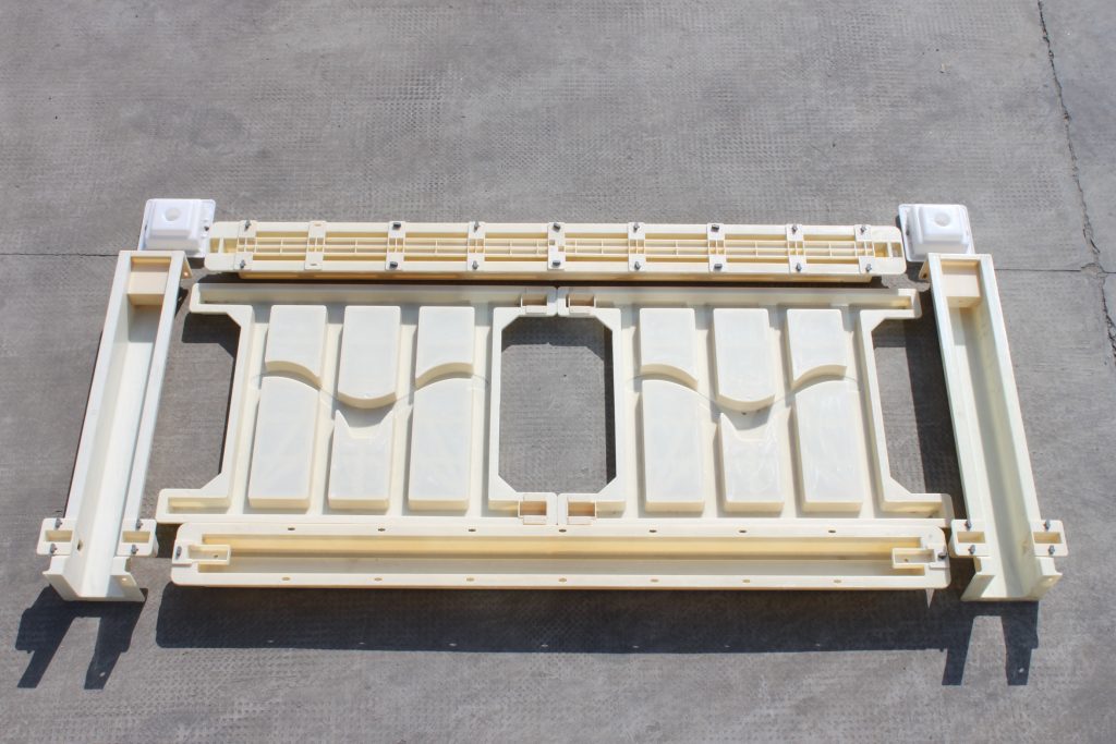 三,72型高鐵護欄欄片模具,之所以整套護欄模具稱為海鷗高鐵護欄塑料模具,原因就是護欄欄片模具采用了海鷗設計,分為AB兩面,尺寸均為101*72*5厘米,拼接處分別置入欄片堵頭,方面施工。