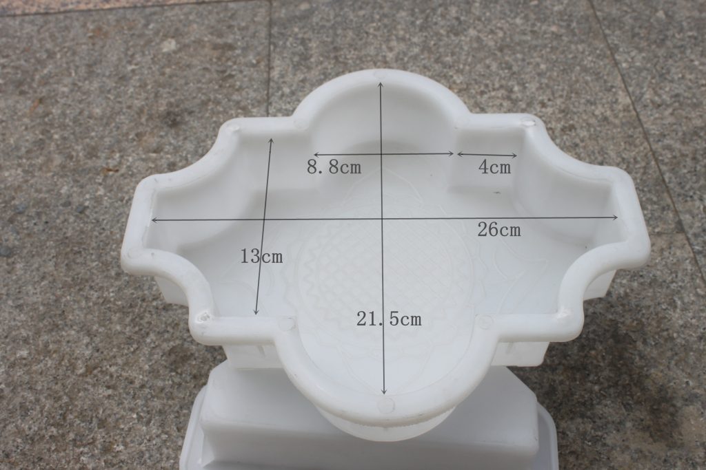 主要為市政水泥基基礎建設服務的塑料彩磚模具,采用全新聚丙烯塑料原料注塑加工而成。此款塑料彩磚模具內側底部以葵花圖案設計,外部則以多形狀架構,可搭配其他類型的水泥彩磚模具組合施工,提升路面品味。