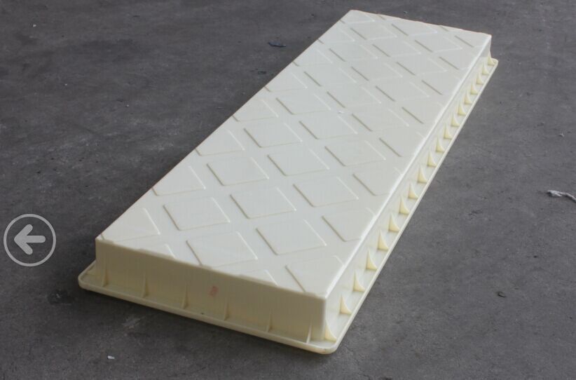 此款為黑龍江哈(哈爾濱)佳(佳木斯)高鐵線路專用的水泥基蓋板模具,采用全新ABS塑料為原料,以菱形防滑設(shè)計為主體,模具內(nèi)部亦有小型鐵標設(shè)計,由于水泥基蓋板模具尺寸較長較大,主要應(yīng)用場所為步板等相關(guān)行道鋪設(shè)。
