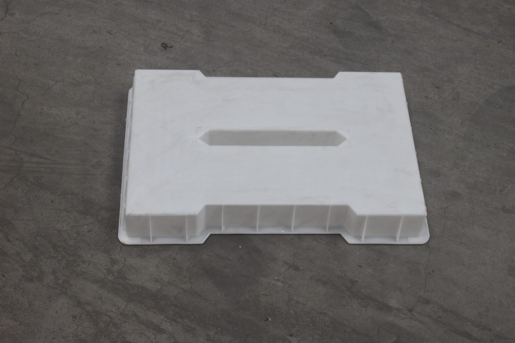 此款為塑料材質(zhì)的路基缺口預(yù)制溝蓋板模具,主要以雙邊缺口及中孔下水橫條設(shè)計,主要用于安紫高速公路路基邊溝建設(shè)。其中所制水泥缺口蓋板厚度高達10CM,對于公路邊溝的安全穩(wěn)定意義重大。