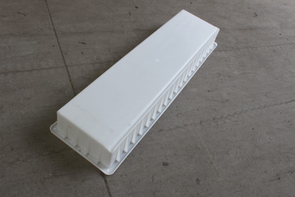 與其他相關水泥制品模具一樣,混凝土路牙石模具采用的塑料原料為PP聚丙烯樹脂,經過注塑工藝的方式一體成型。從此產品實物圖片展示來看,塑料模具內部有一條斜棱平面,這就是倒角,最為主要的作用就是混凝土路牙石成品在脫模或者施工預埋中可以有效避免外力破損,相比直角樣式效果相當明顯。