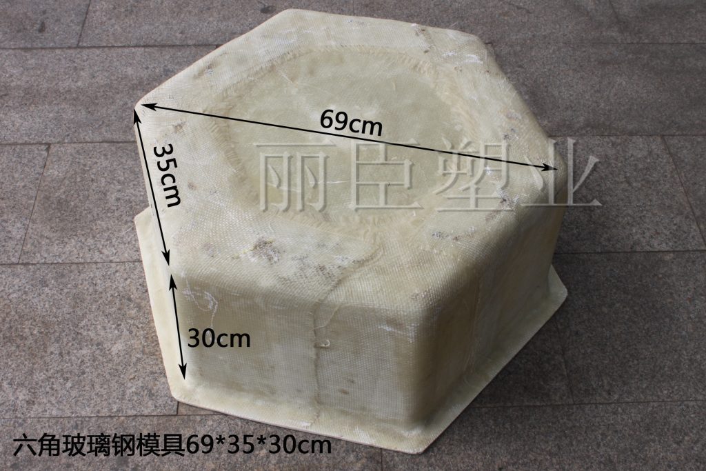 這是一款實心六角護坡磚模具,采用了樹脂玻璃鋼材質經壓膜加工而成,行業內名稱為六角護坡玻璃鋼模具,在水泥預制行業內較為少見,但是因其玻璃鋼材料特質優點,也會受到部分施工方的采用。