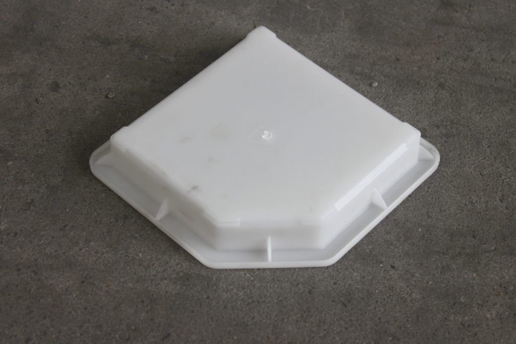 樣子比較奇葩的一個(gè)塑料彩磚模具,正常結(jié)構(gòu)以正方形外觀,而其中一個(gè)角為缺角樣式,相比市場上常見的彩磚模具來說,難得一見,當(dāng)然究其原因,還是來自于市場需求。