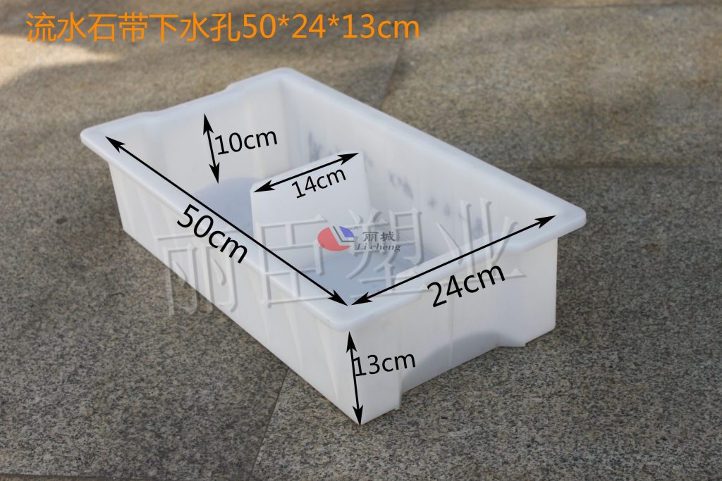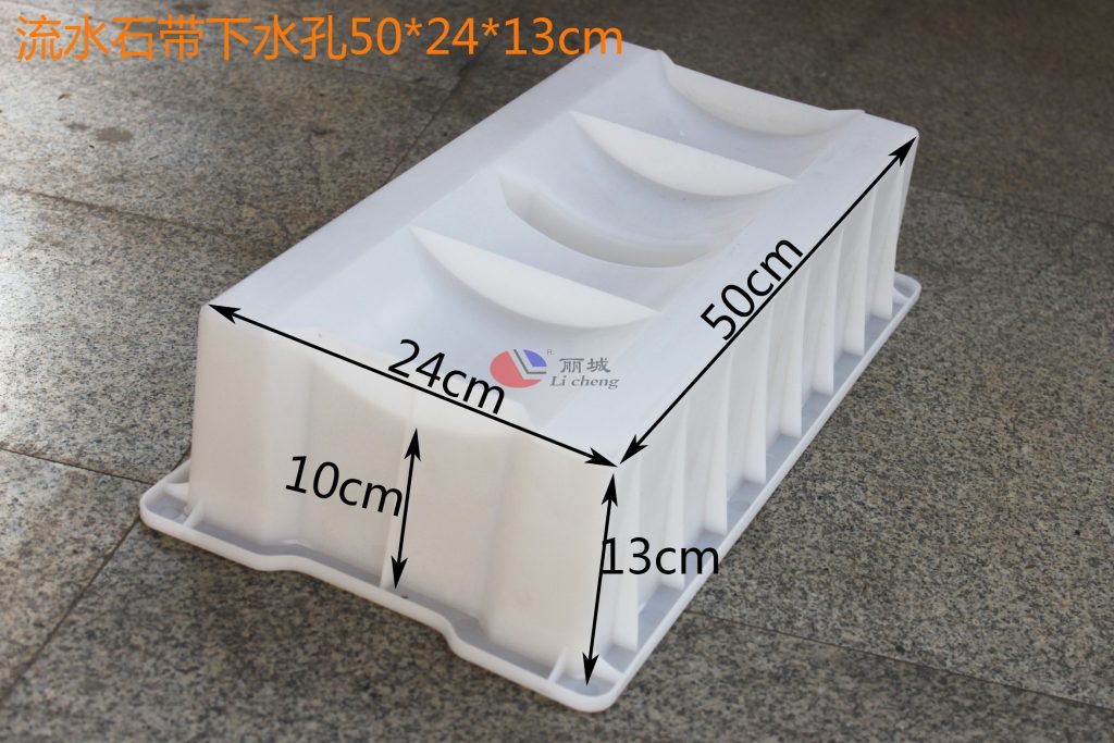 這款流水石蓋板模具的設(shè)計使用上大多數(shù)以市政基礎(chǔ)建設(shè)上使用為主,這款蓋板模具的澆筑出來的水泥預(yù)制品,呈現(xiàn)形狀為U型的流水槽,大多安裝在公路、公園道路兩邊。其主要的作用是能多方面聚集雨水、污水,用于積水的排放。