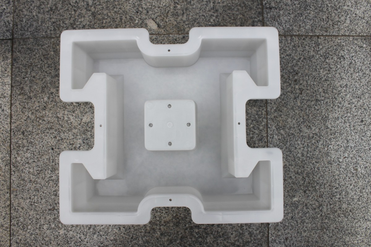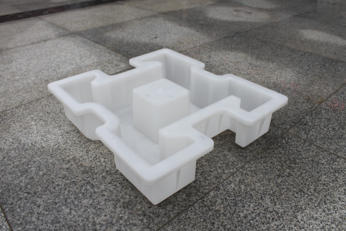 連鎖型植草磚模具使用了PP聚丙烯材質,以注塑工藝一次成型。塑料模具主要設計結構為2頭使用了連鎖方式,在進行地面鋪設時可以有效的增加植草磚牢固度,而且施工作業時地面鋪設簡便,有效提高市政基礎設施建設的效率。