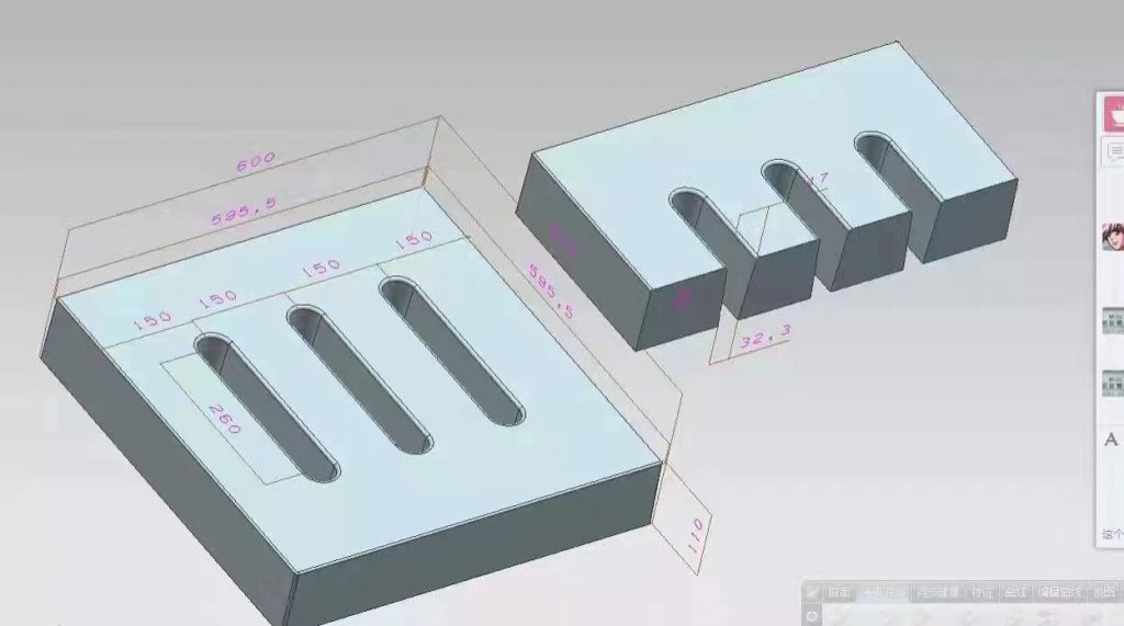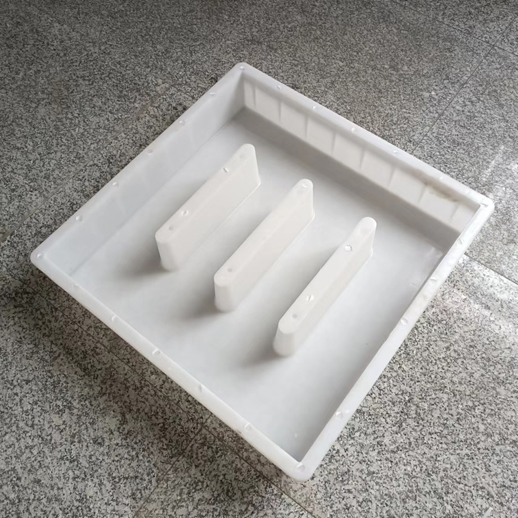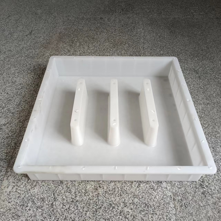 三孔雨水蓖塑料模具,模具采用米白色PP材質(zhì)制成,模具尺寸為60cm*60cm*11cm,模具開始設計尺寸為60cm*60cm*10cn,因為需要充分達標,所以模具厚度尺寸實際尺寸比設計尺寸厚1cm,模具采用三孔設計,具體尺寸如下設計圖。主要用于道路下水使用,且厚度厚,可以承載較大的壓力。