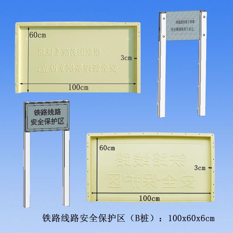 根據《中華人民共和國鐵路法》《鐵路安全管理條例》和其他有關法律、行政法規,鐵路與道路交叉的無人看守道口應當按照國家標準設置警示標志,此款模具為b樁。